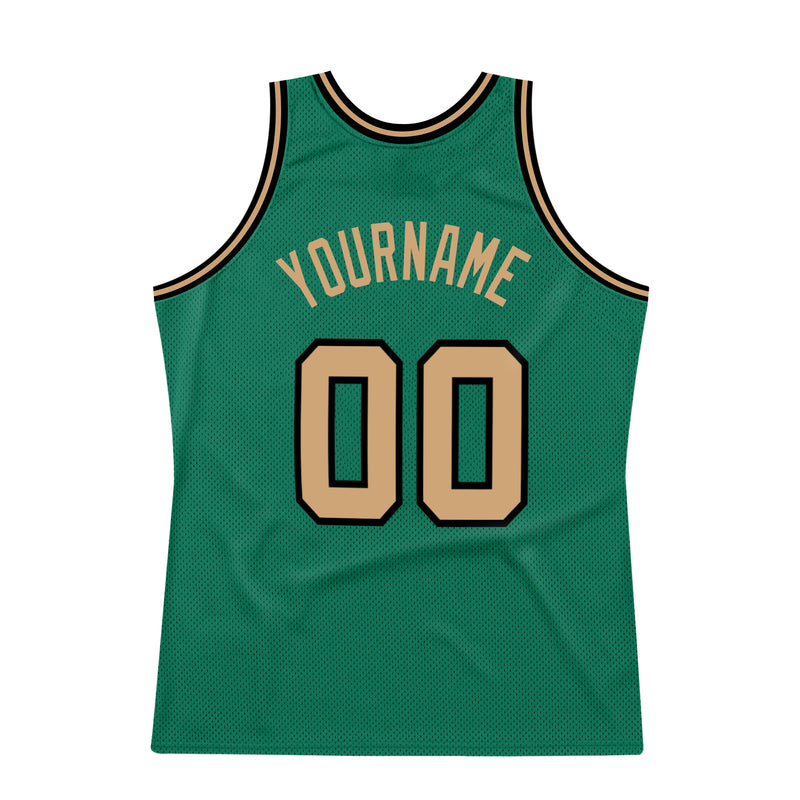 Custom Kelly Green Old Gold-Black Authentic Throwback Basketball Jersey
