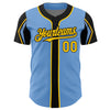 Custom Light Blue Yellow-Black 3 Colors Arm Shapes Authentic Baseball Jersey