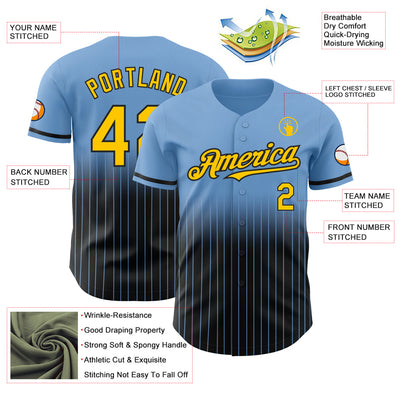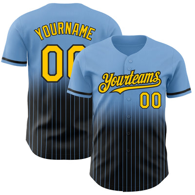 Custom Light Blue Pinstripe Yellow-Black Authentic Fade Fashion Baseball Jersey