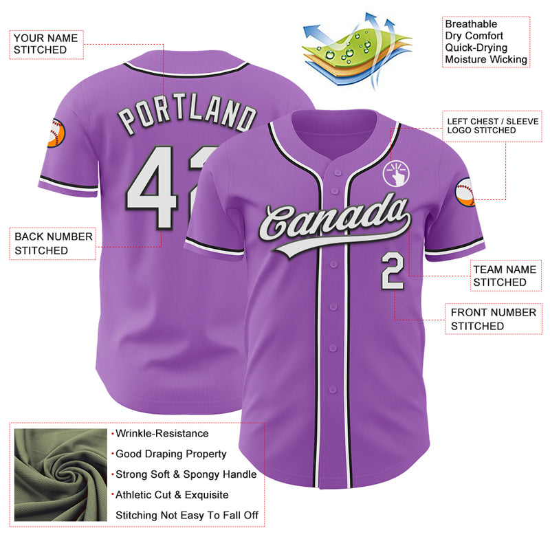 Custom Medium Purple White-Black Authentic Baseball Jersey