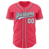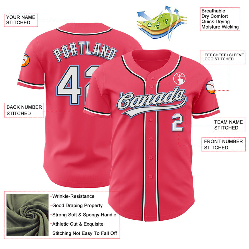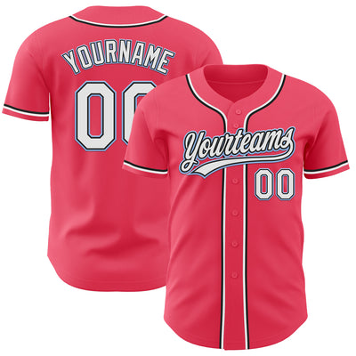 Custom Neon Pink Black-Light Blue Authentic Baseball Jersey