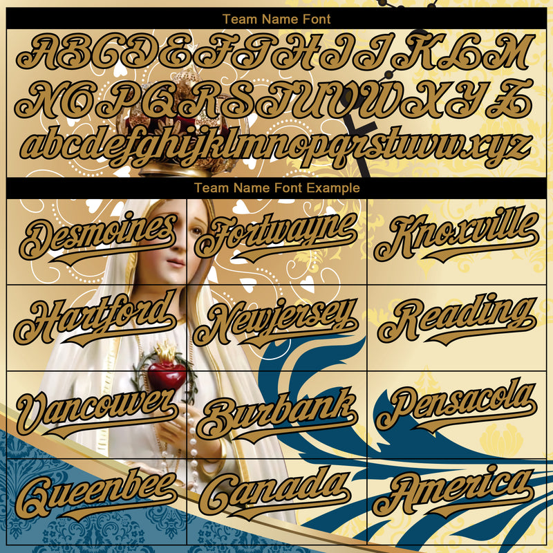 Custom Old Gold Black 3D Pattern Design Religion Virgin Mary Authentic Baseball Jersey