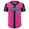 Custom Pink Light Blue-Black 3 Colors Arm Shapes Authentic Baseball Jersey