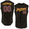 Custom Black Gold Pinstripe Purple Authentic Sleeveless Baseball Jersey