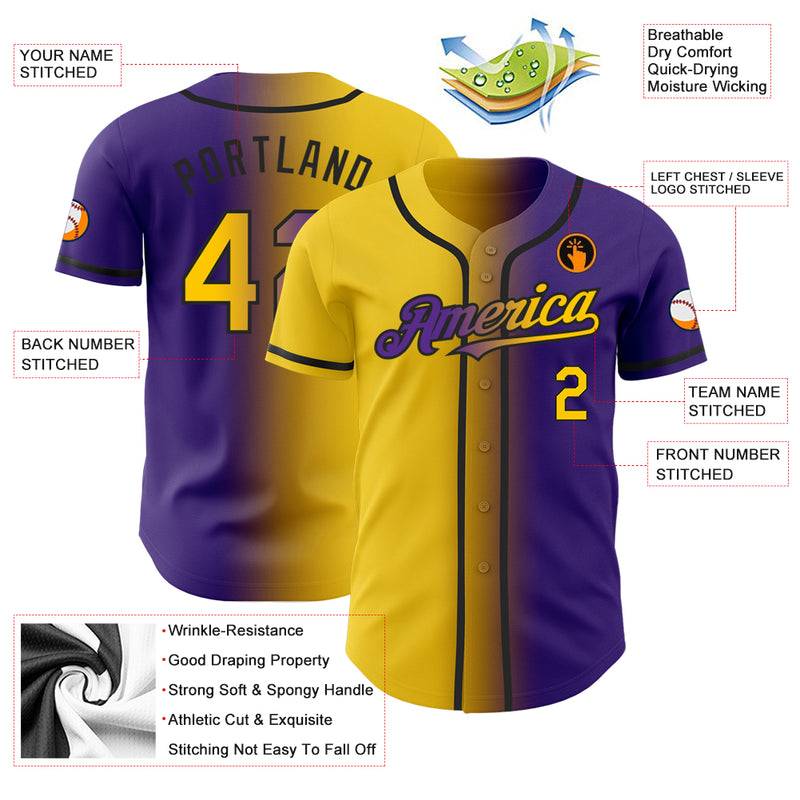 Custom Purple Yellow-Black Authentic Gradient Fashion Baseball Jersey