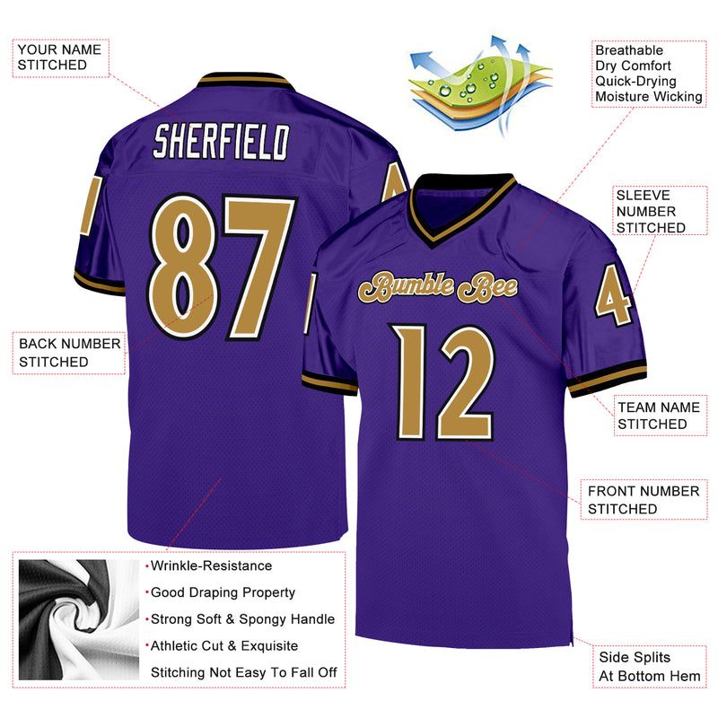 Custom Purple Old Gold-Black Mesh Authentic Throwback Football Jersey