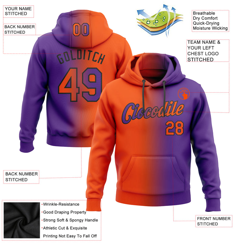 Custom Stitched Purple Orange-Black Gradient Fashion Sports Pullover Sweatshirt Hoodie