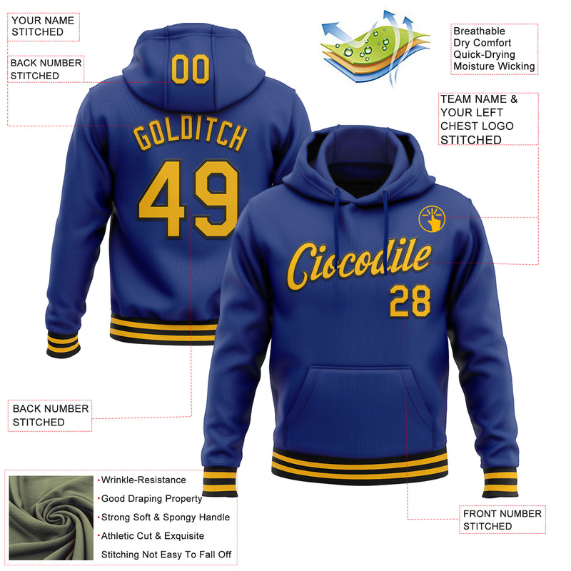 Custom Stitched Royal Gold-Black Sports Pullover Sweatshirt Hoodie
