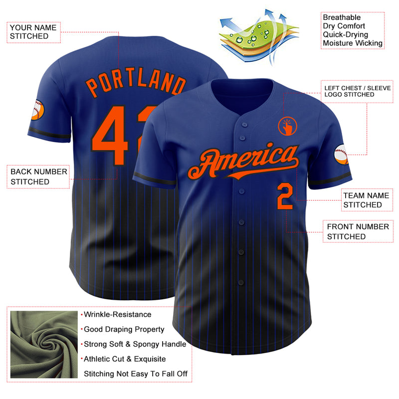 Custom Royal Pinstripe Orange-Black Authentic Fade Fashion Baseball Jersey