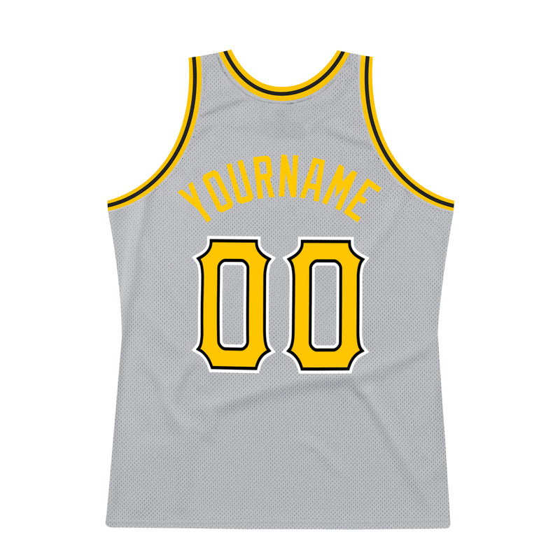 Custom Gray Gold-Black Authentic Throwback Basketball Jersey