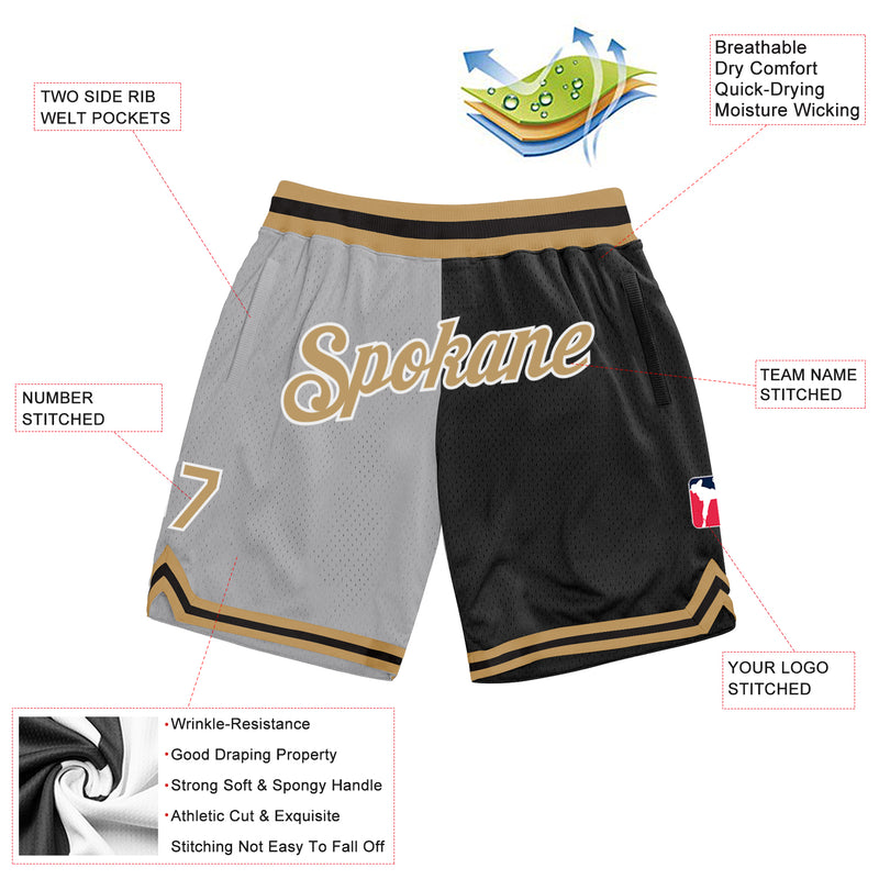 Custom Gray Old Gold-Black Authentic Throwback Split Fashion Basketball Shorts