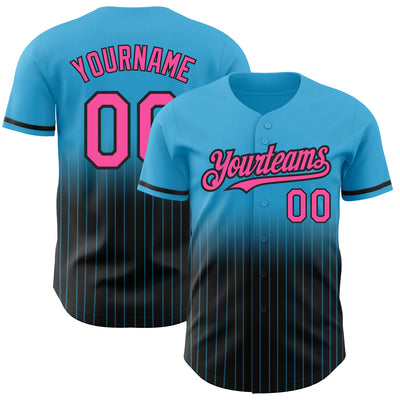 Custom Sky Blue Pinstripe Pink-Black Authentic Fade Fashion Baseball Jersey