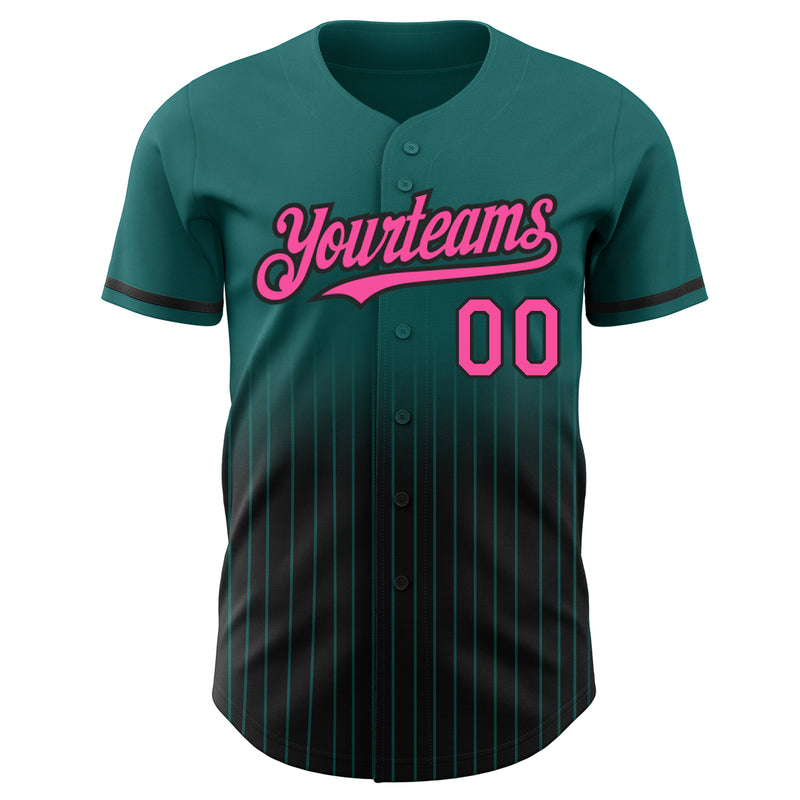 Custom Teal Pinstripe Pink-Black Authentic Fade Fashion Baseball Jersey