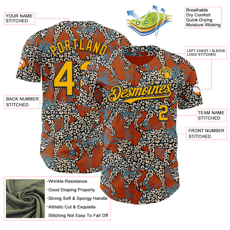 Custom Texas Orange 3D Pattern Baseball Jersey