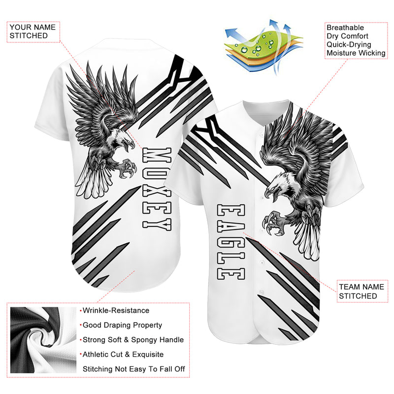 Custom White White-Black 3D Eagle Authentic Baseball Jersey