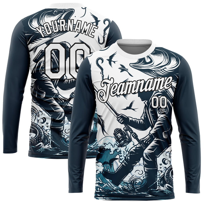 Custom White Black 3D Pattern Design Fishing Fish Hook Performance T-Shirt