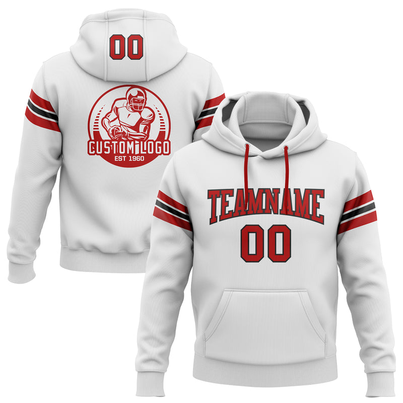 Custom Stitched White Red-Black Football Pullover Sweatshirt Hoodie