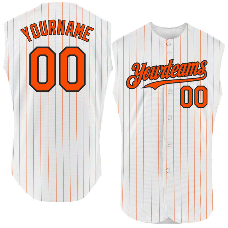 Custom White Orange Pinstripe Black Authentic Sleeveless Baseball Jersey