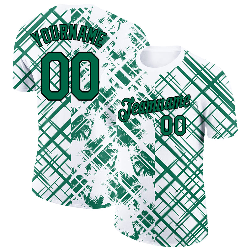 Custom White Kelly Green-Black 3D Tropical Hawaii Trees Performance T-Shirt