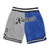Custom Gray Black-Blue Authentic Throwback Split Fashion Basketball Shorts