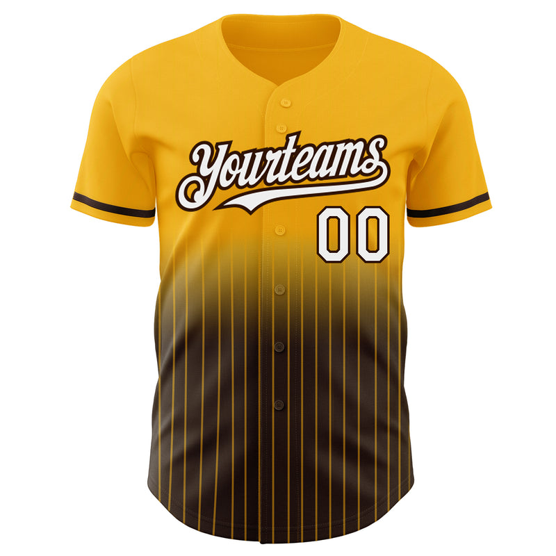 Custom Gold Pinstripe White-Brown Authentic Fade Fashion Baseball Jersey
