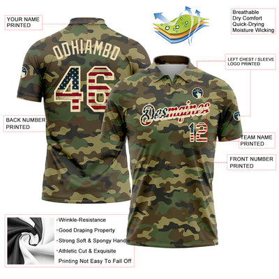 Custom Camo Vintage USA Flag-City Cream Performance Salute To Service Golf Polo Shirt