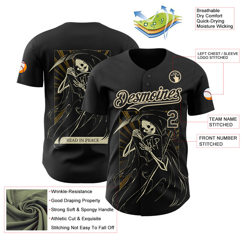 Custom Black Black-Cream 3D Tobe Fonseca Read in Peace Death Book Reader Authentic Baseball Jersey