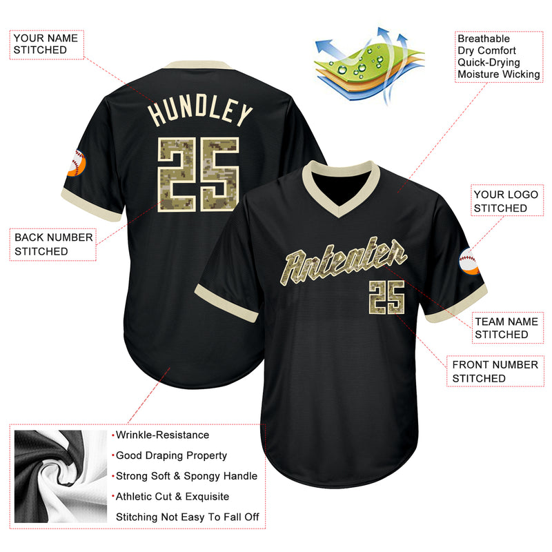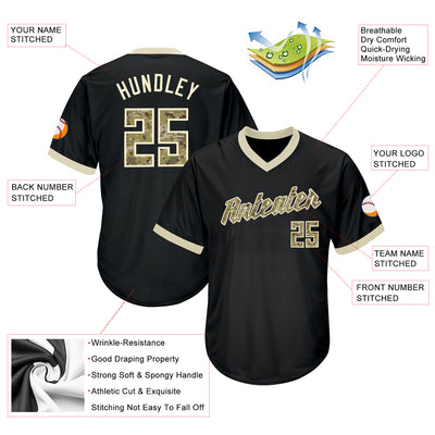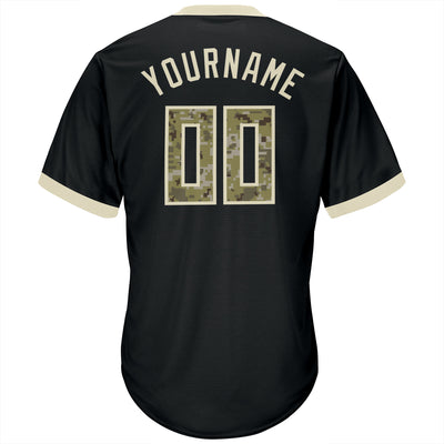 Custom Black Camo-Cream Authentic Throwback Rib-Knit Baseball Jersey Shirt