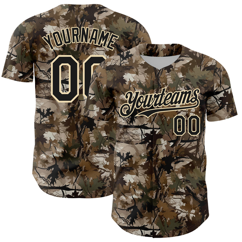 Custom Camo Black-Cream 3D Woodland Camo Authentic Salute To Service Baseball Jersey