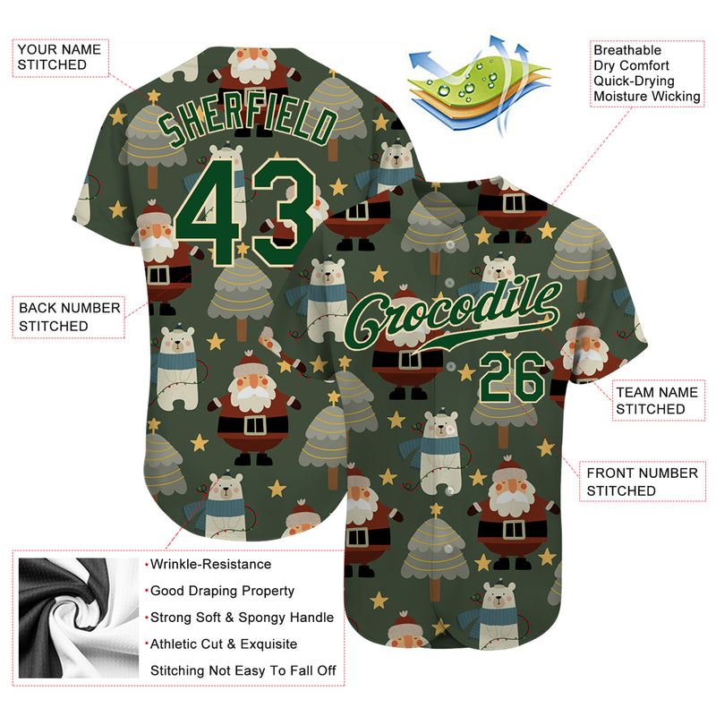 Custom Green Green-Cream Christmas 3D Authentic Baseball Jersey