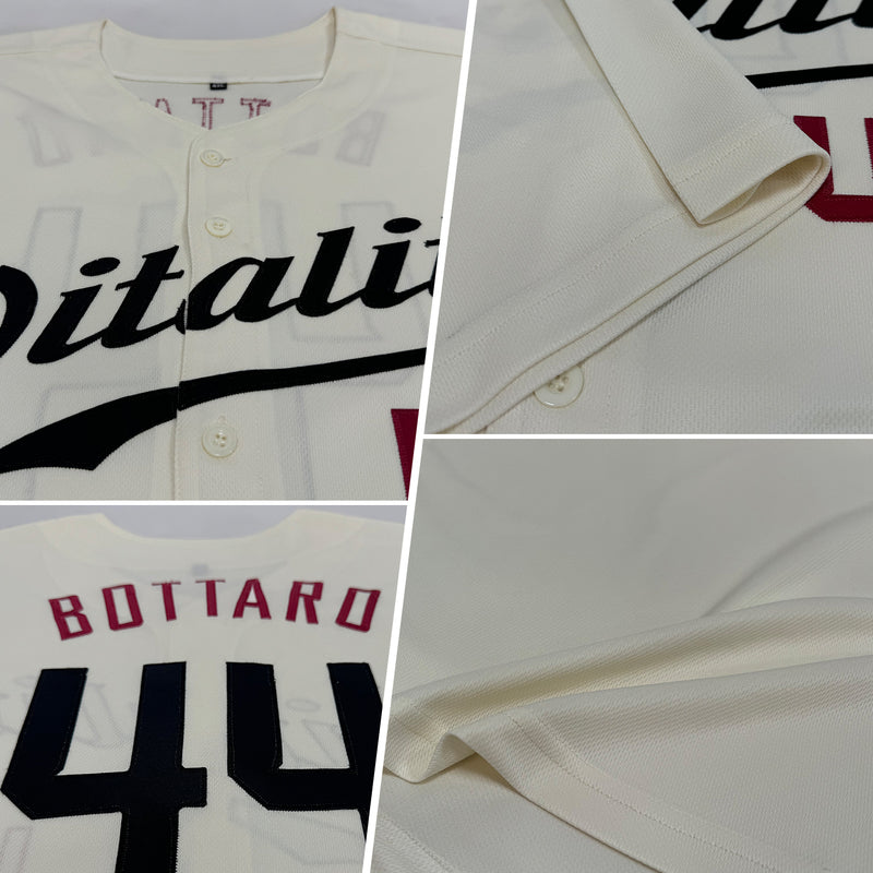Custom Cream Black-Crimson Authentic Baseball Jersey