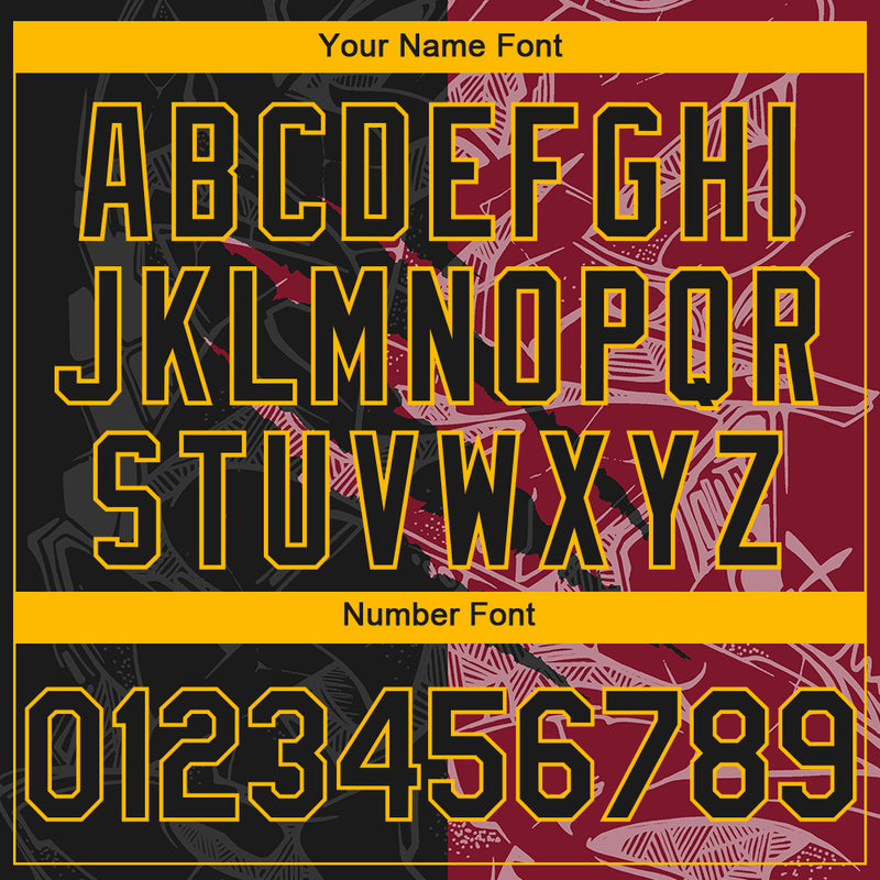Custom Stitched Graffiti Pattern Black Crimson-Gold 3D Scratch Sports Pullover Sweatshirt Hoodie