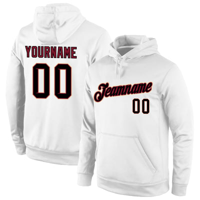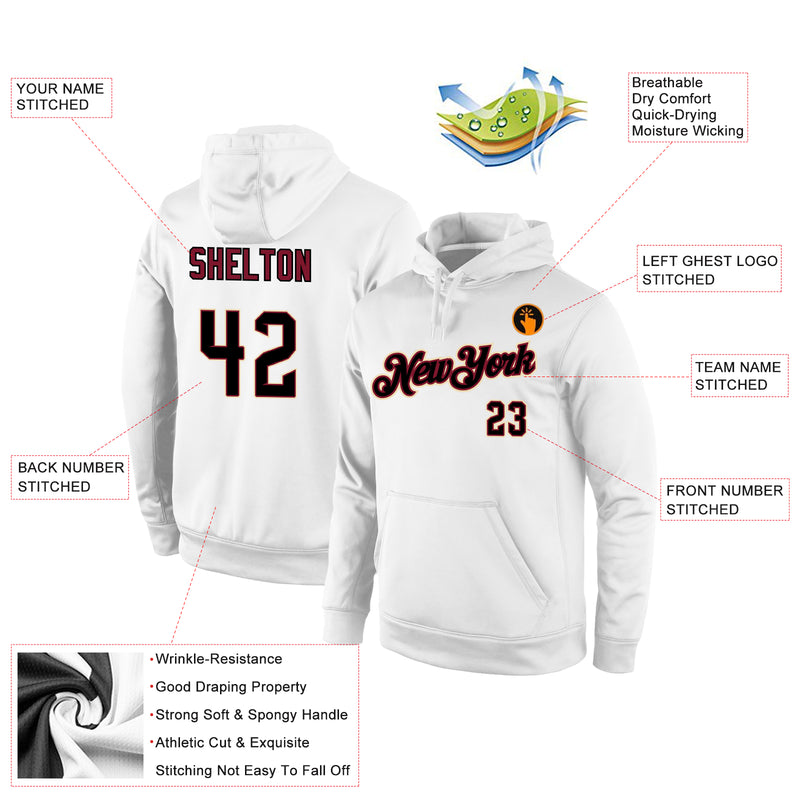 Custom Stitched White Black-Crimson Sports Pullover Sweatshirt Hoodie