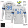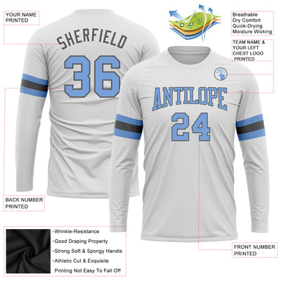 Custom White Light Blue-Steel Gray Long Sleeve Performance T-Shirt