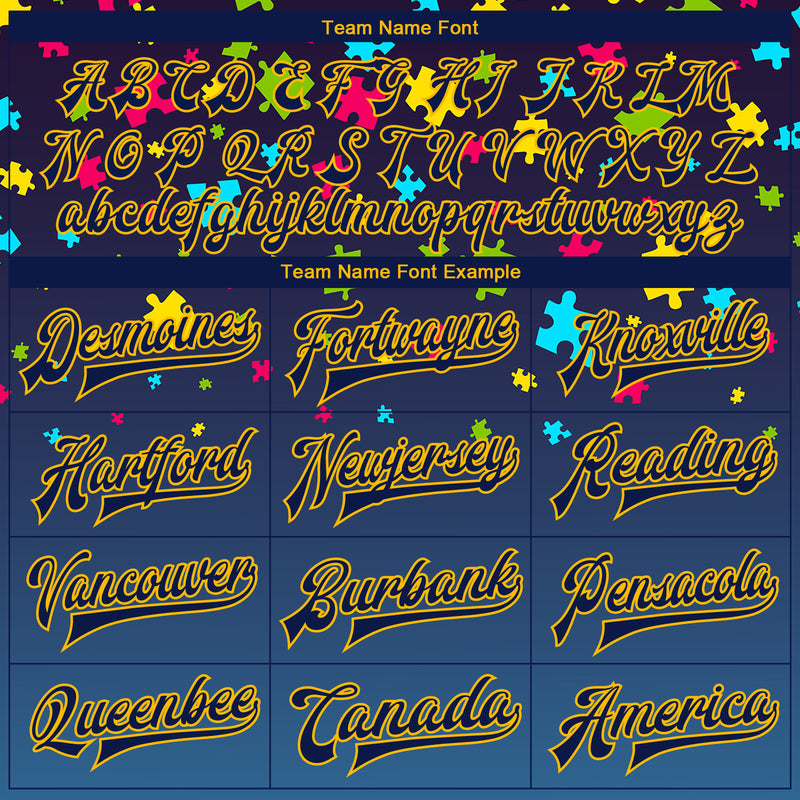 Custom Autism Awareness Puzzle Pieces Navy-Gold 3D Bomber Full-Snap Varsity Letterman Jacket