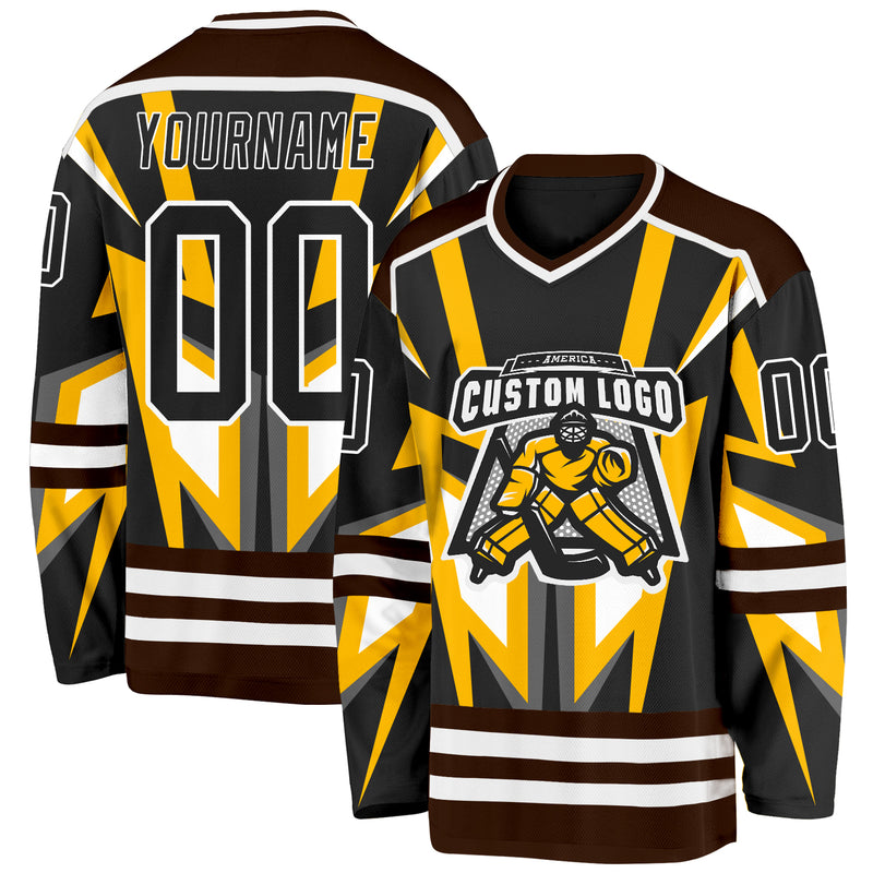 Custom Black Gold Brown-White 3D Pattern Cyber Mecha E-sport Hockey Jersey