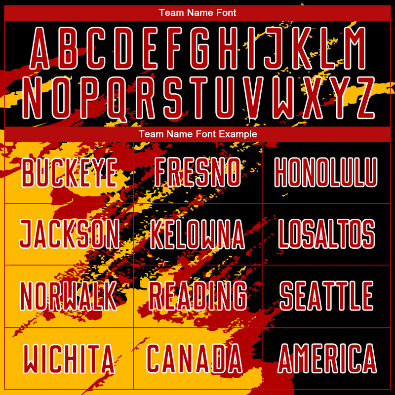 Custom Black Red-Gold Abstract Fragment Art Splash Sublimation Soccer Uniform Jersey