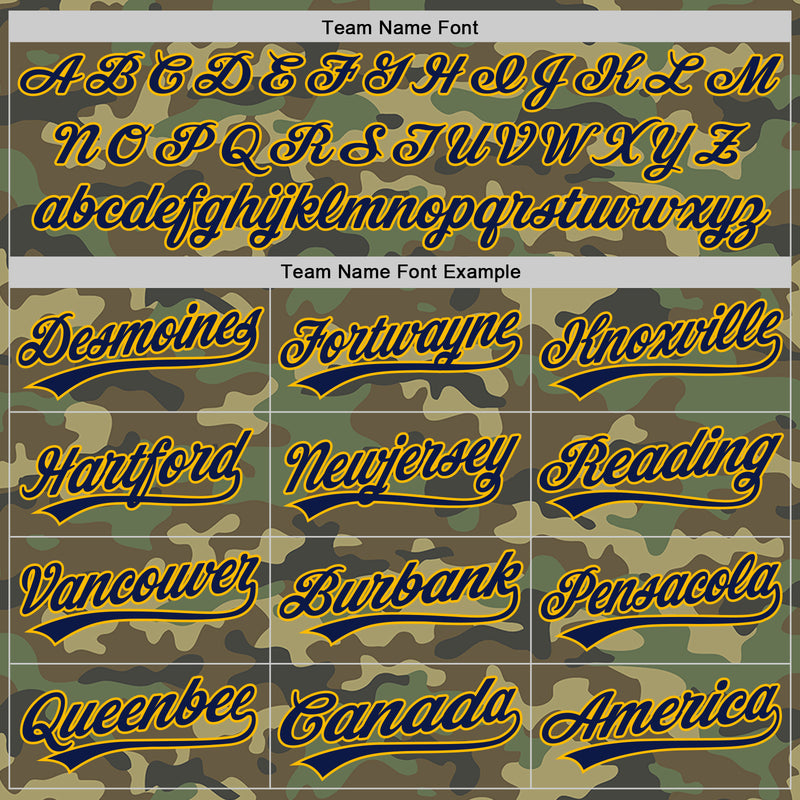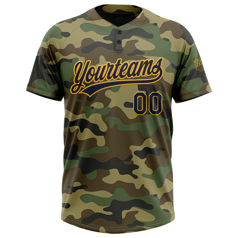 Custom Camo Navy-Gold Salute To Service Two-Button Unisex Softball Jersey