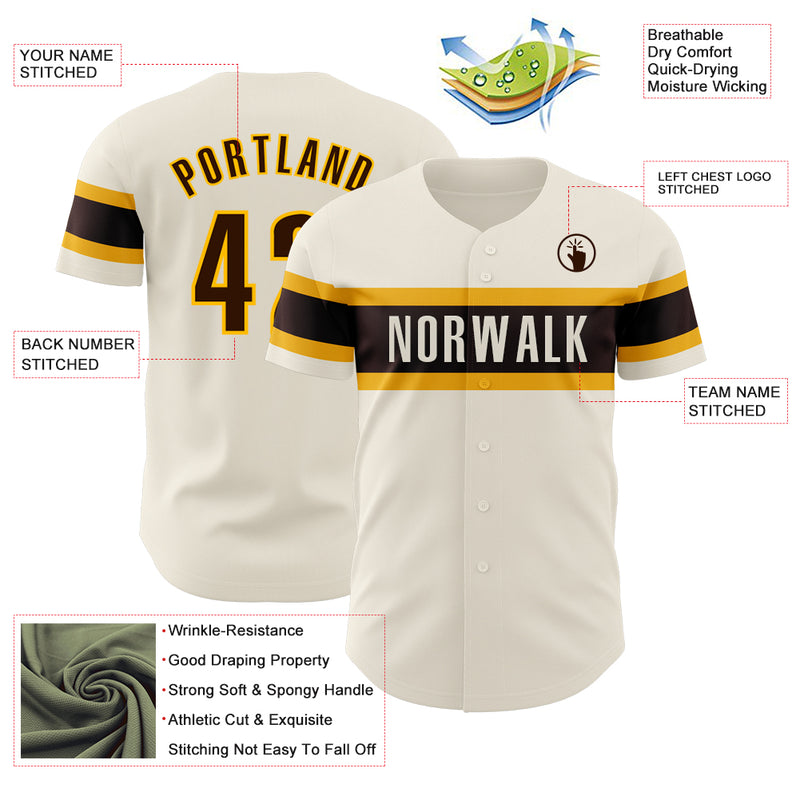 Custom Cream Brown-Gold Authentic Baseball Jersey