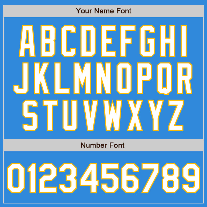 Custom Electric Blue White-Gold 3 Colors Arm Shapes Authentic Baseball Jersey