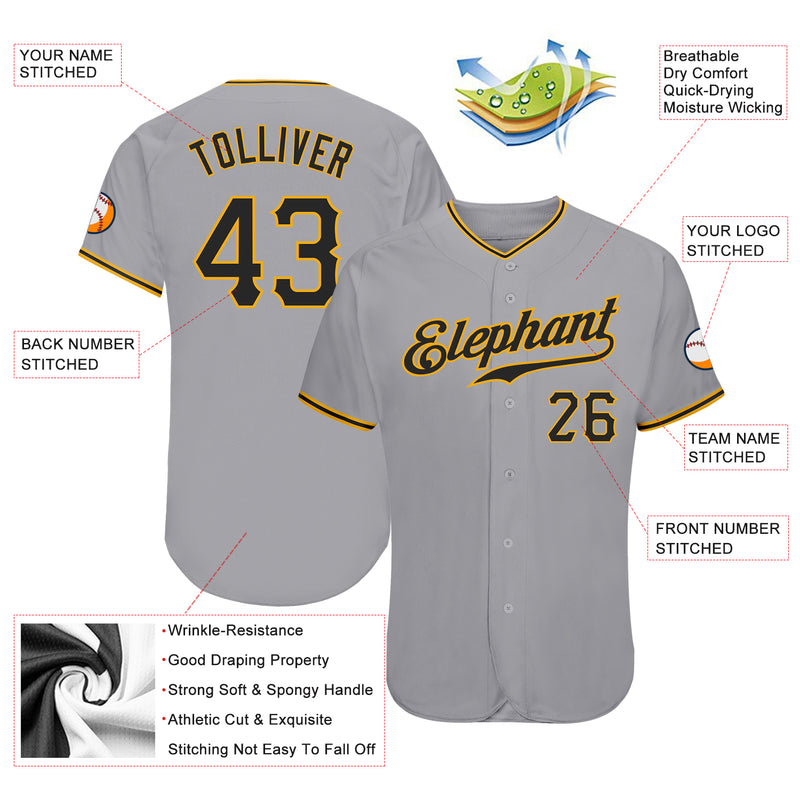 Custom Gray Black-Gold Authentic Baseball Jersey