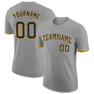Custom Gray Black-Gold Performance T-Shirt