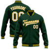 Custom Green White-Gold Bomber Full-Snap Varsity Letterman Jacket