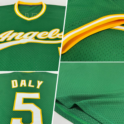 Custom Kelly Green White-Gold Authentic Throwback Baseball Jersey