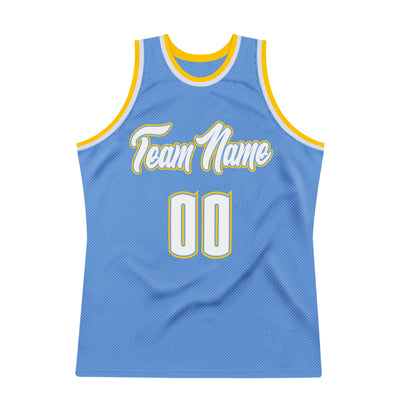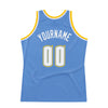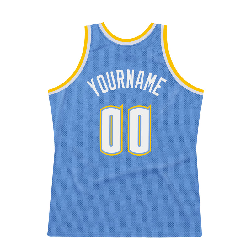 Custom Light Blue White-Gold Authentic Throwback Basketball Jersey