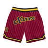 Custom Maroon White Pinstripe Navy-Gold Authentic Basketball Shorts