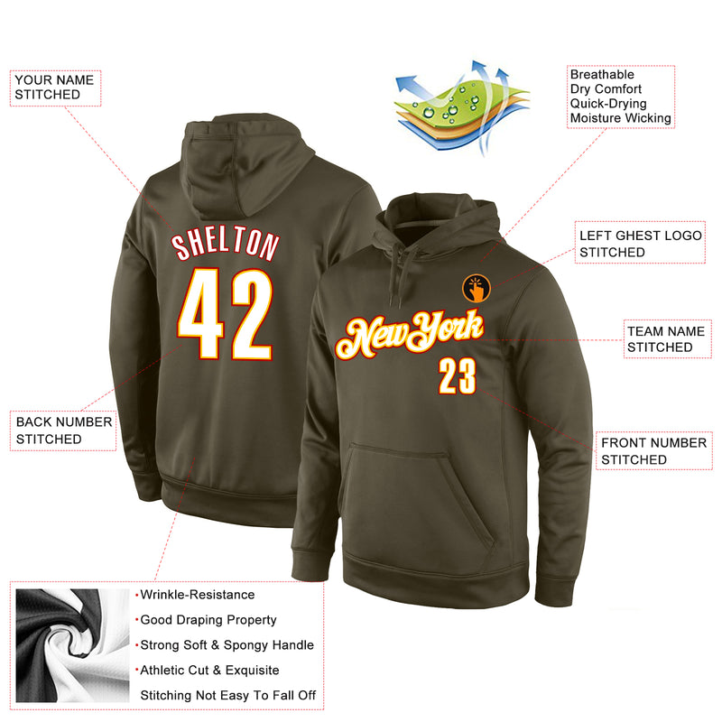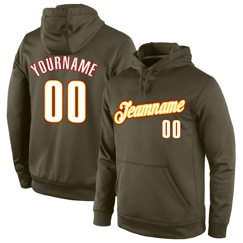 Custom Stitched Olive White-Gold Sports Pullover Sweatshirt Salute To Service Hoodie