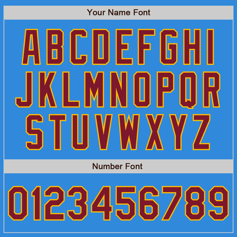 Custom Powder Blue Crimson-Gold Bomber Varsity Letterman Zipper Jacket