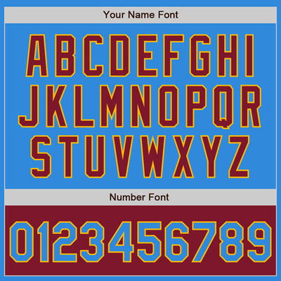 Custom Powder Blue Gold-Crimson Bomber Varsity Letterman Two Tone Zipper Jacket