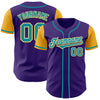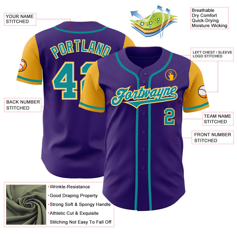 Custom Purple Teal-Gold Authentic Two Tone Baseball Jersey